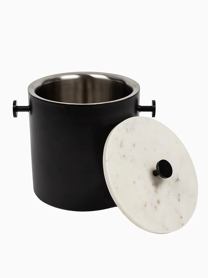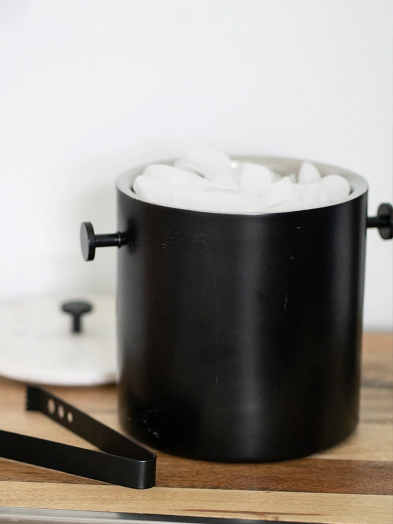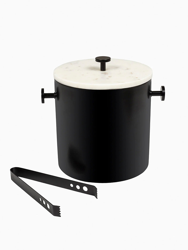 Our Black and Marble Ice Bucket and tongs are a winner at cocktail hour. With our black and marble detailing, this keeps ice at-the-ready for adult beverages.
