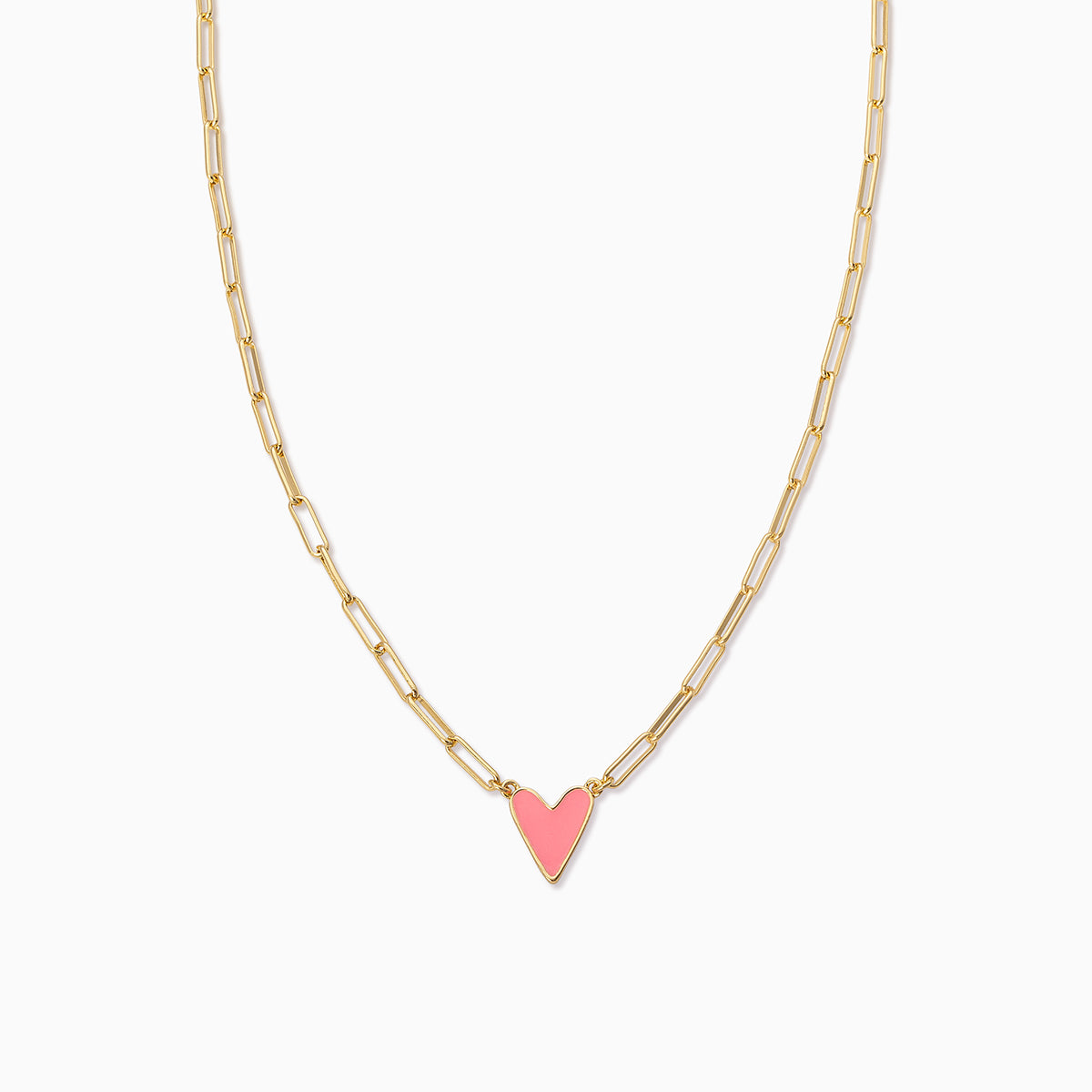 Our best-selling heart necklace, featuring a paperclip chain, now comes in even more colors! This chain and pendant necklace is a sweet addition to your daily necklace set. For a full look, layer the Enamel Heart Necklace in the color of your choice with your favorite gold chain necklaces.