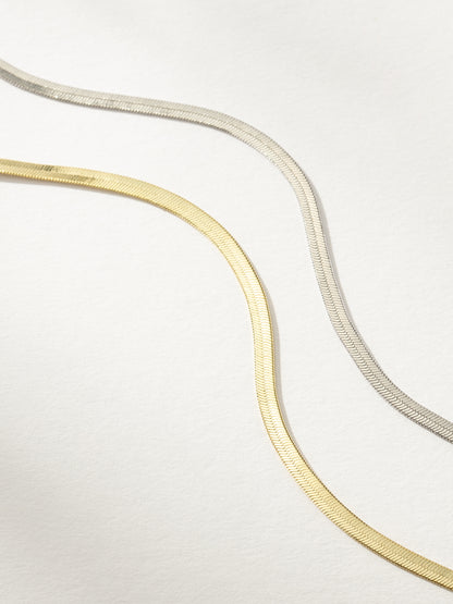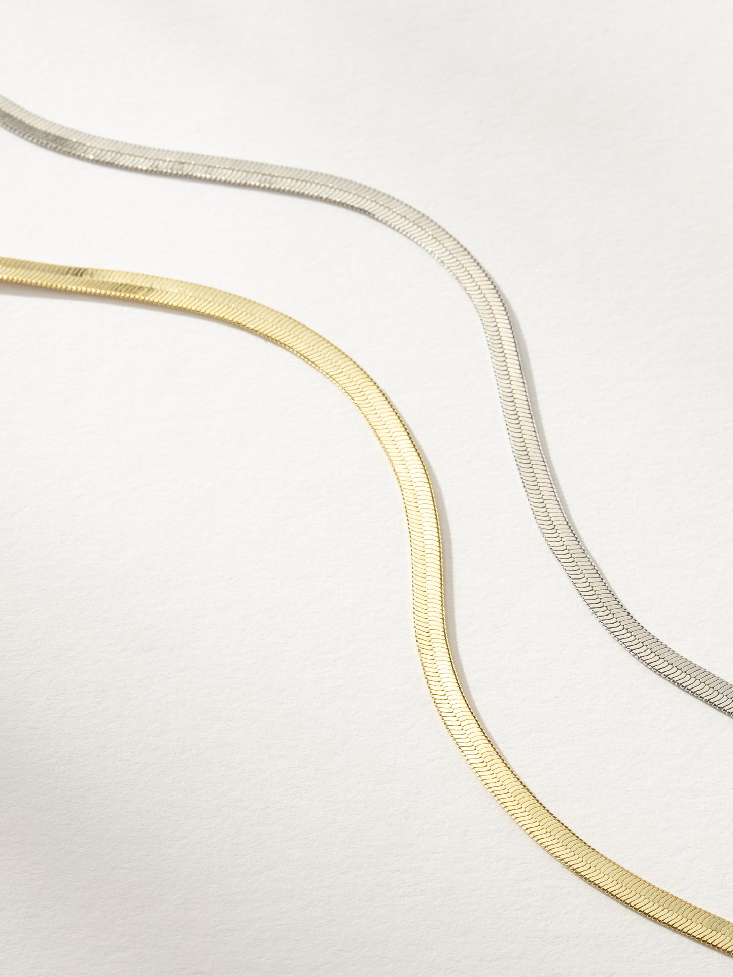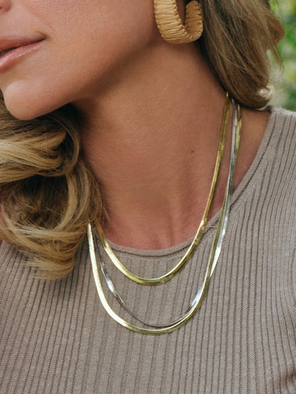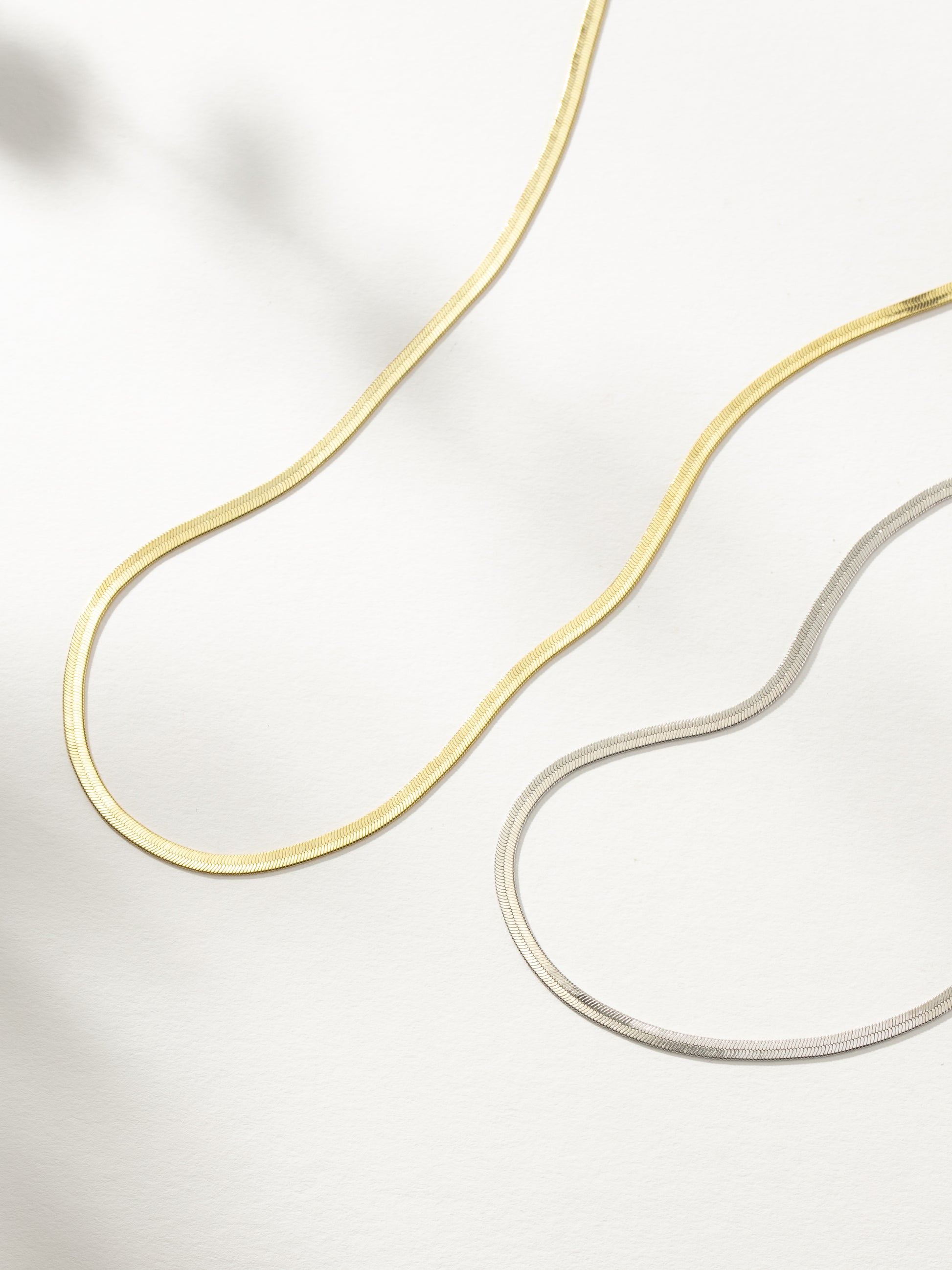 Take charge and elevate your look with our Bossy Herringbone Chain Necklace. Coming in gold and silver, this flat chain necklace will not only look good on its own, but it’s also the perfect layering necklace. For a look you’ll want to wear on repeat, layer this with any of our other chain necklaces.
