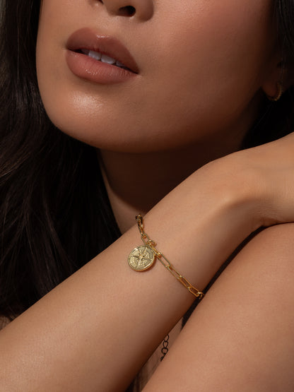 Find your way in our Compass Pendant and Chain Bracelet. Featuring a paperclip chain and a bold compass pendant, this gold bracelet is the summer staple. For a full look, pair this chain and pendant bracelet with all of your other favorite chain jewelry styles.
