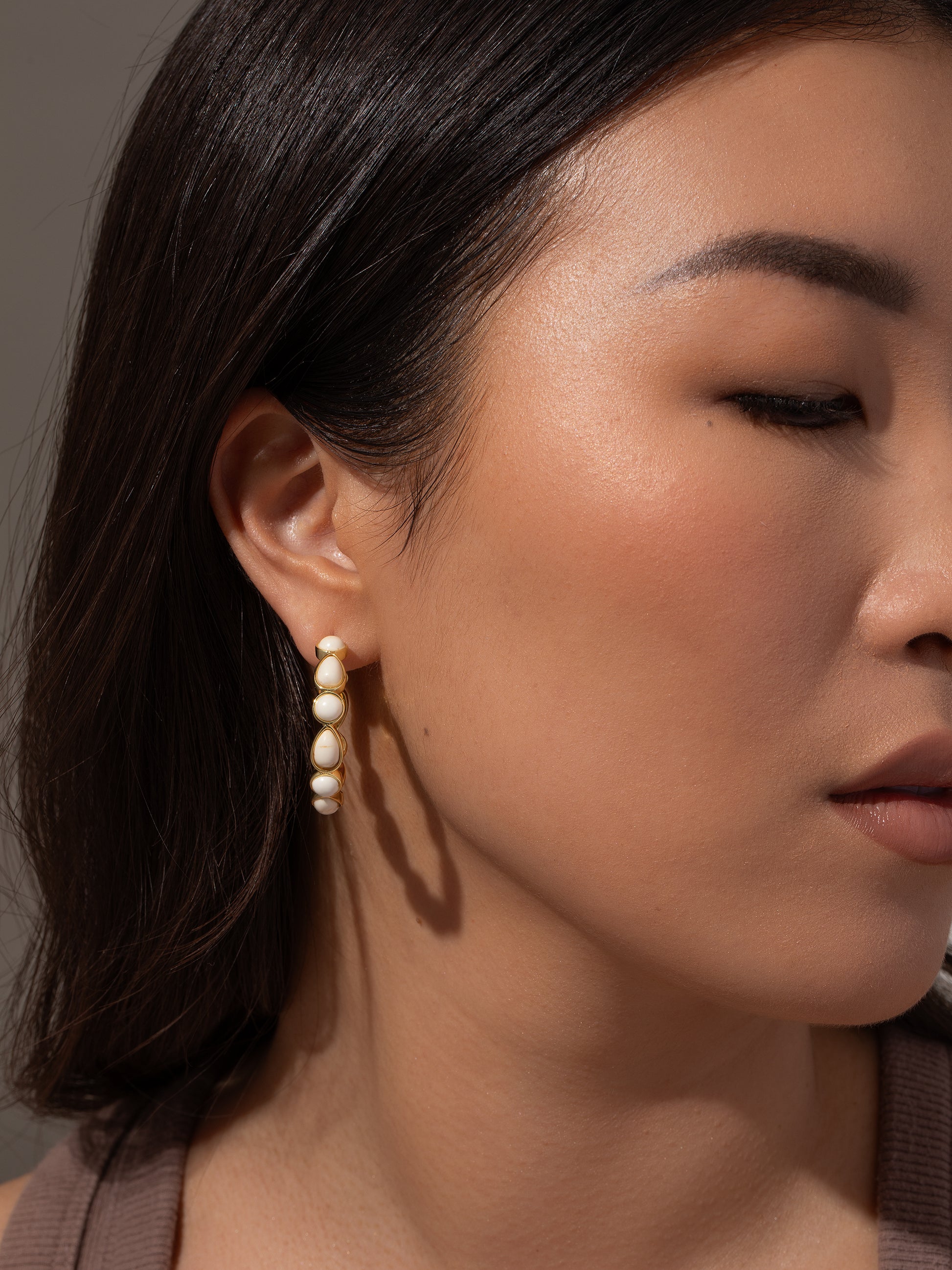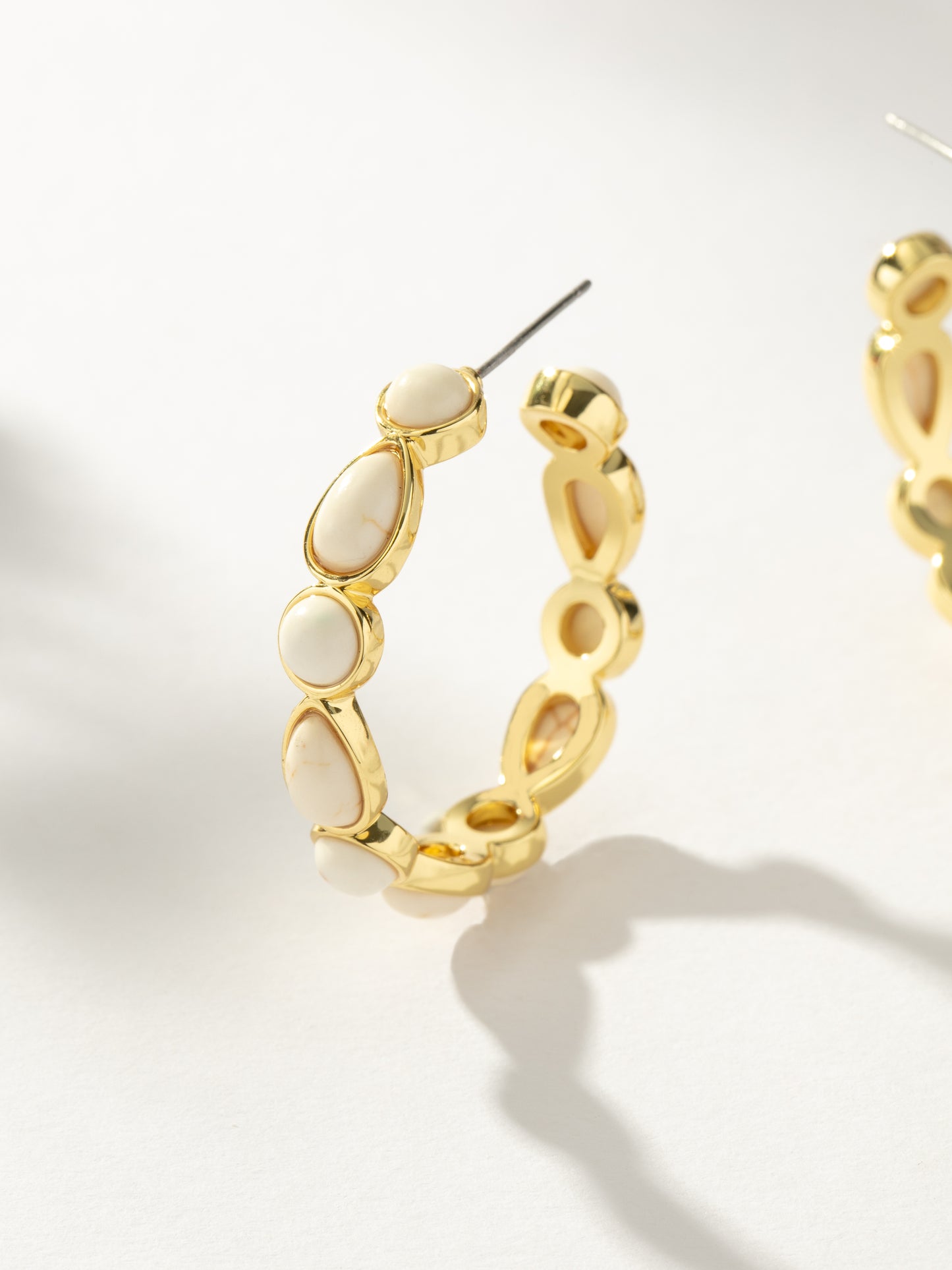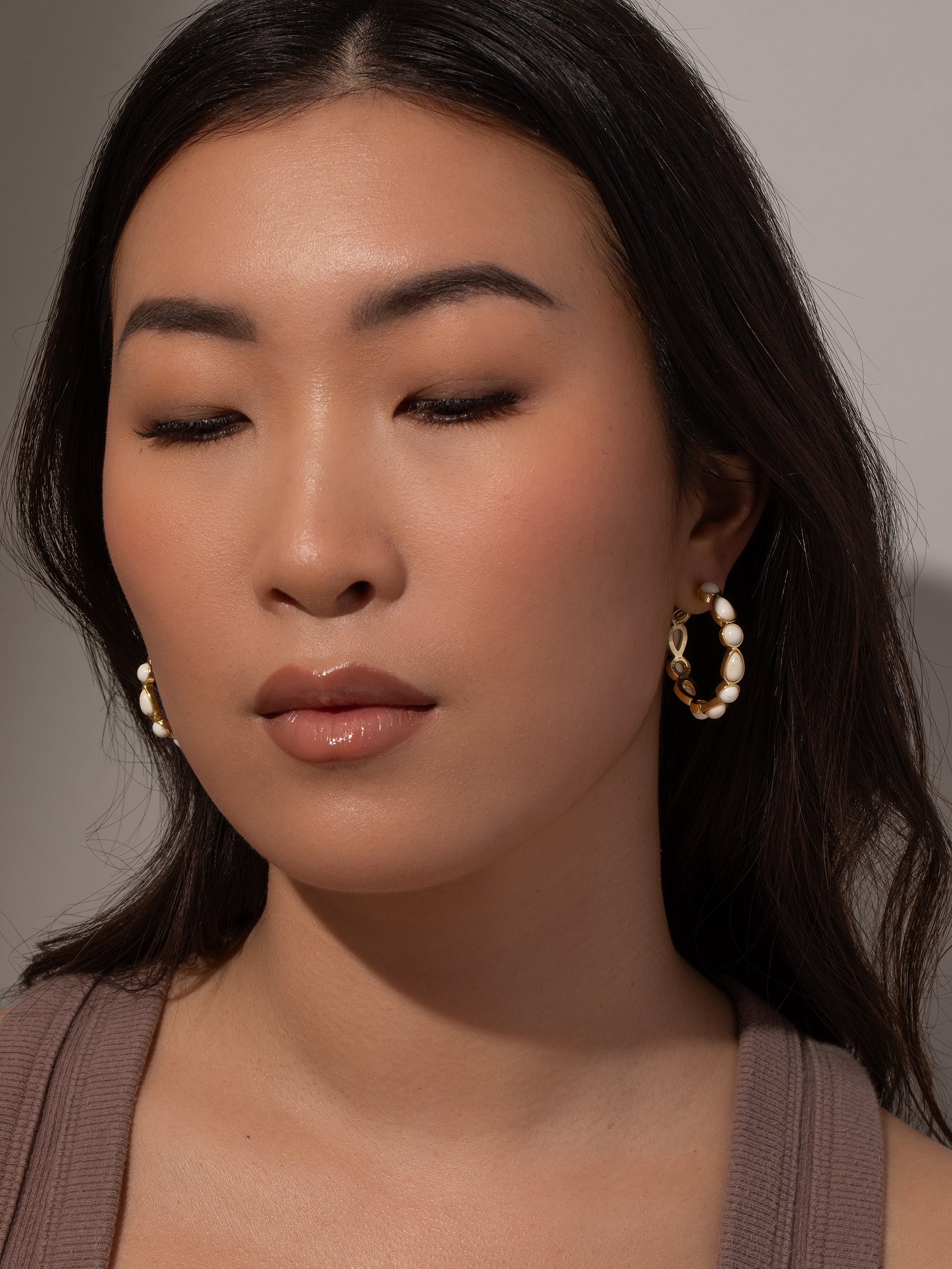It’s the season to make a statement and we have the earrings you need. Our Force Of Nature Hoop Earrings are big and bold, while still acting as a neutral in your jewelry box. These gold hoop earrings feature neutral colored stones that will go with every outfit and all of your other gold jewelry favorites.