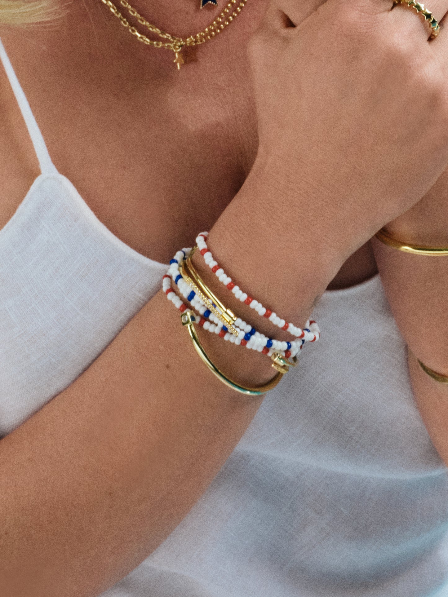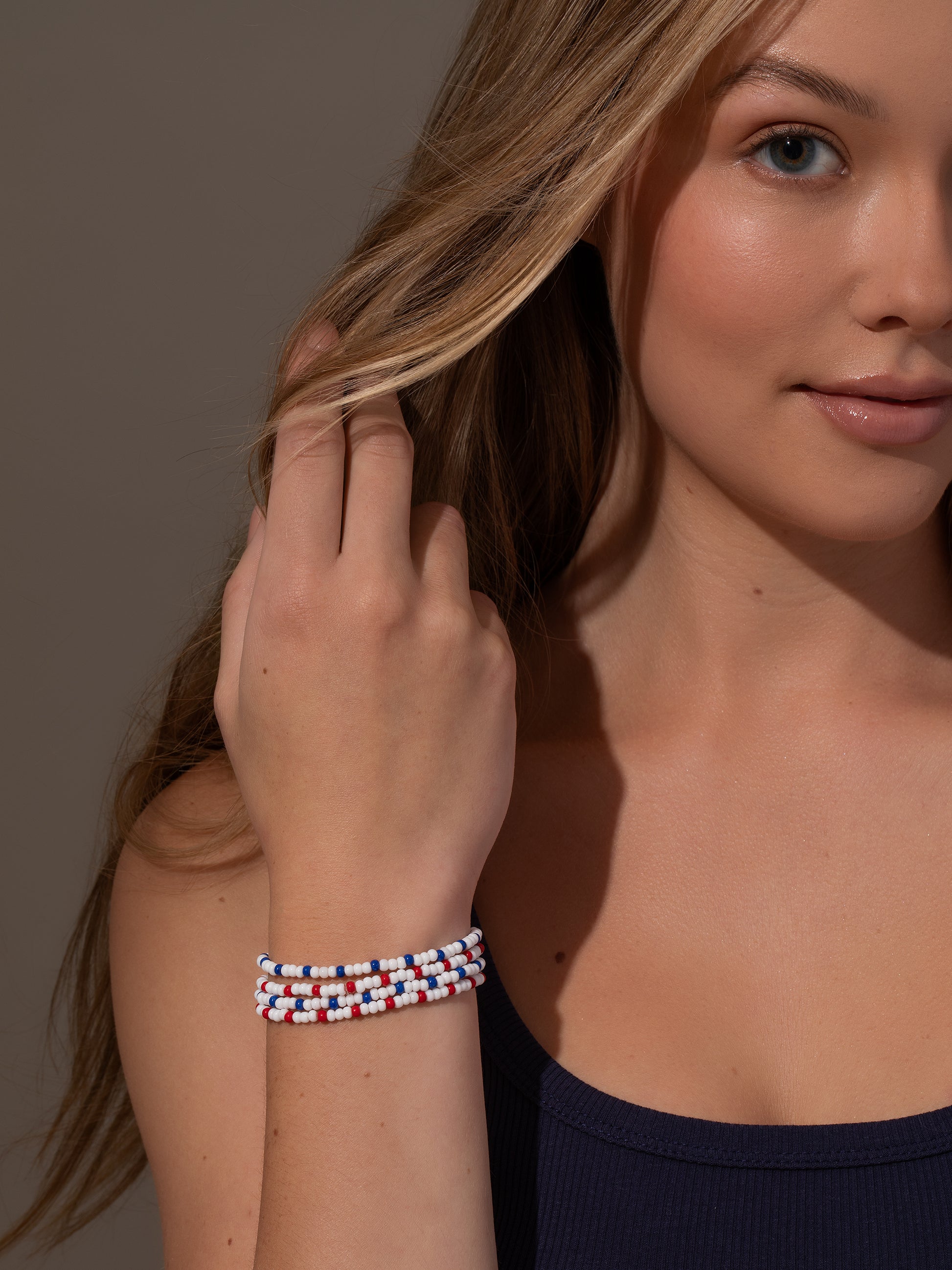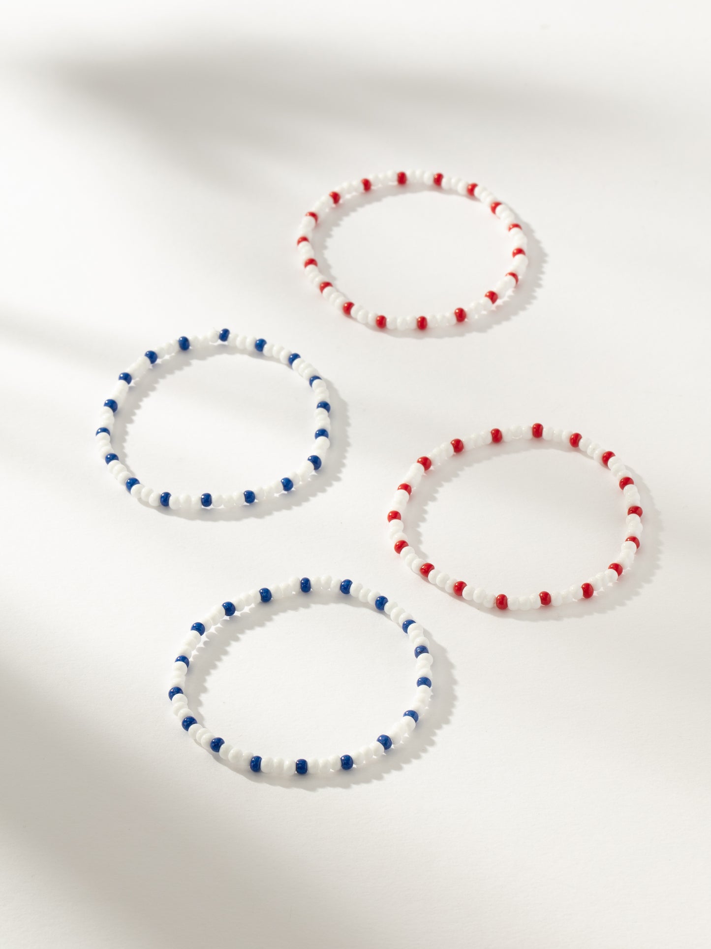 Give your Memorial Day and 4th of July look a pop of red, white, and blue with our Independent Beaded Bracelet (Set of 4). This beaded bracelet stack is perfect for all of your summer plans. From festivals to cookouts, you’re going to be wearing this bracelet set all season long. Want more beaded styles? Shop our full beaded jewelry collection.