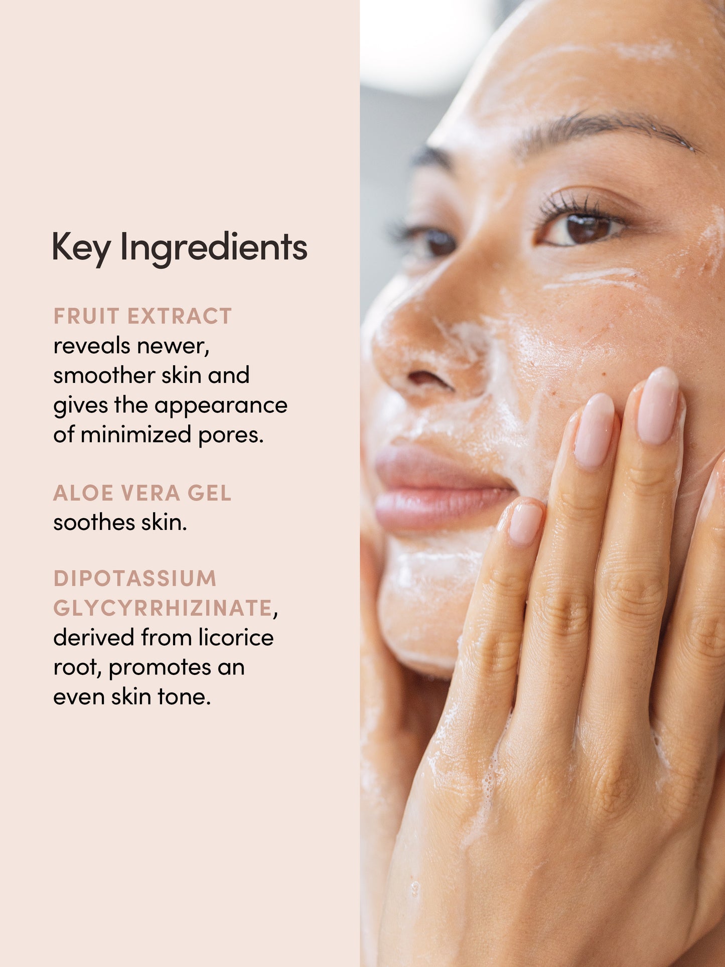 Fruit extract blends improves moisturization and help skin’s natural exfoliation process. Reveals newer, smoother skin and gives the appearance of minimized pores.