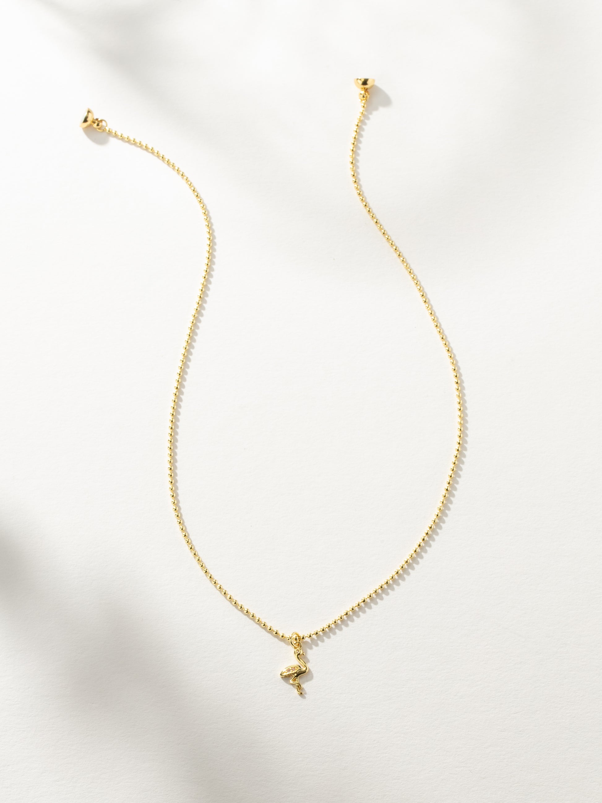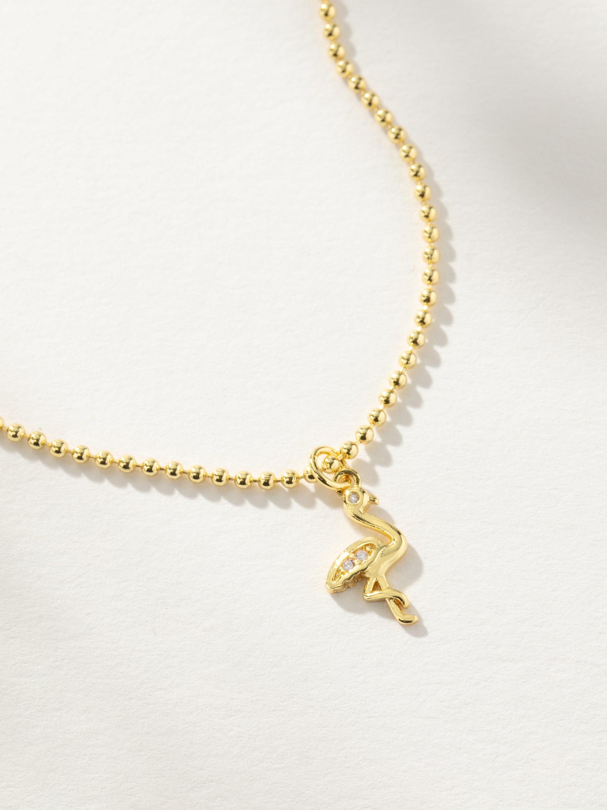 Nothing says summer break like our gold Kids' Flamingo Pendant Necklace. Featuring a ball chain and a mini flamingo charm with gem detailing, this kids’ necklace will easily become something they cherish. This necklace features a magnetic closure, meaning your little one can easily take it on and off themselves.
