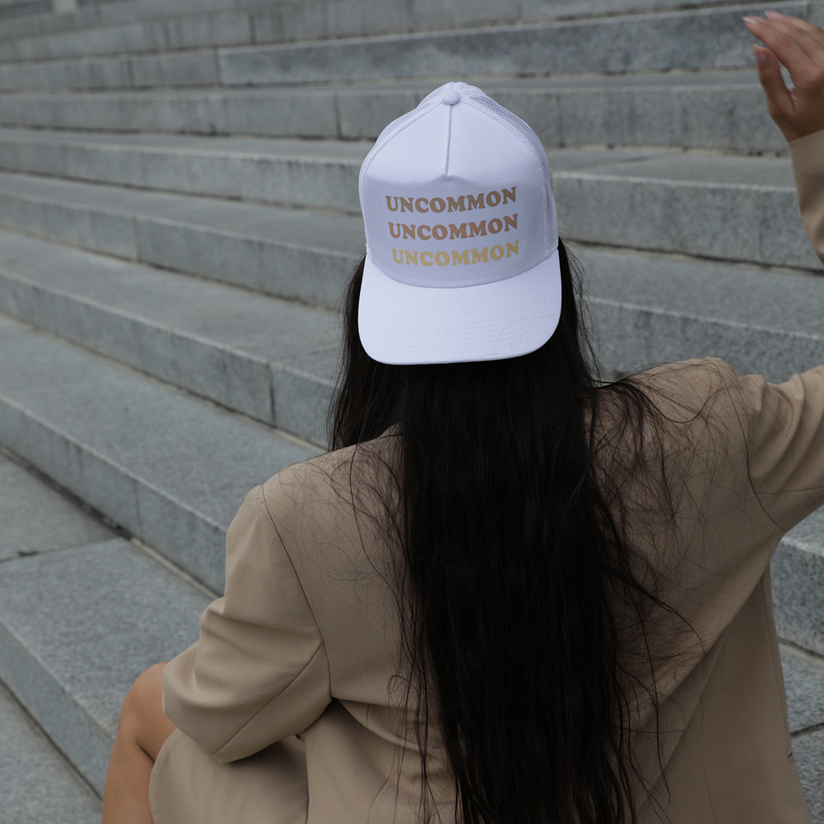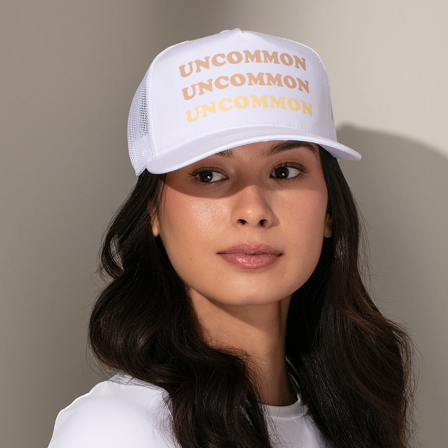 There’s nothing else quite like our Uncommon Ombré Hat. This white trucker hat is perfect for an early morning run, a chill pool day, and really anything else you want to wear it for. Want more uncommon styles? Get our Uncommon Sweatshirt and check out the full apparel line.