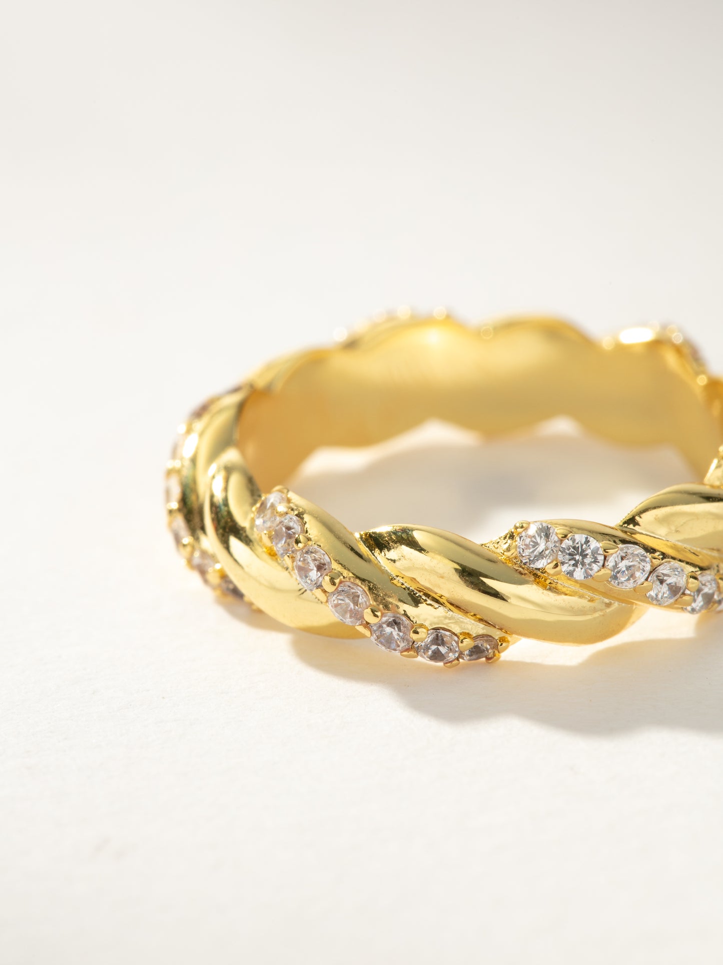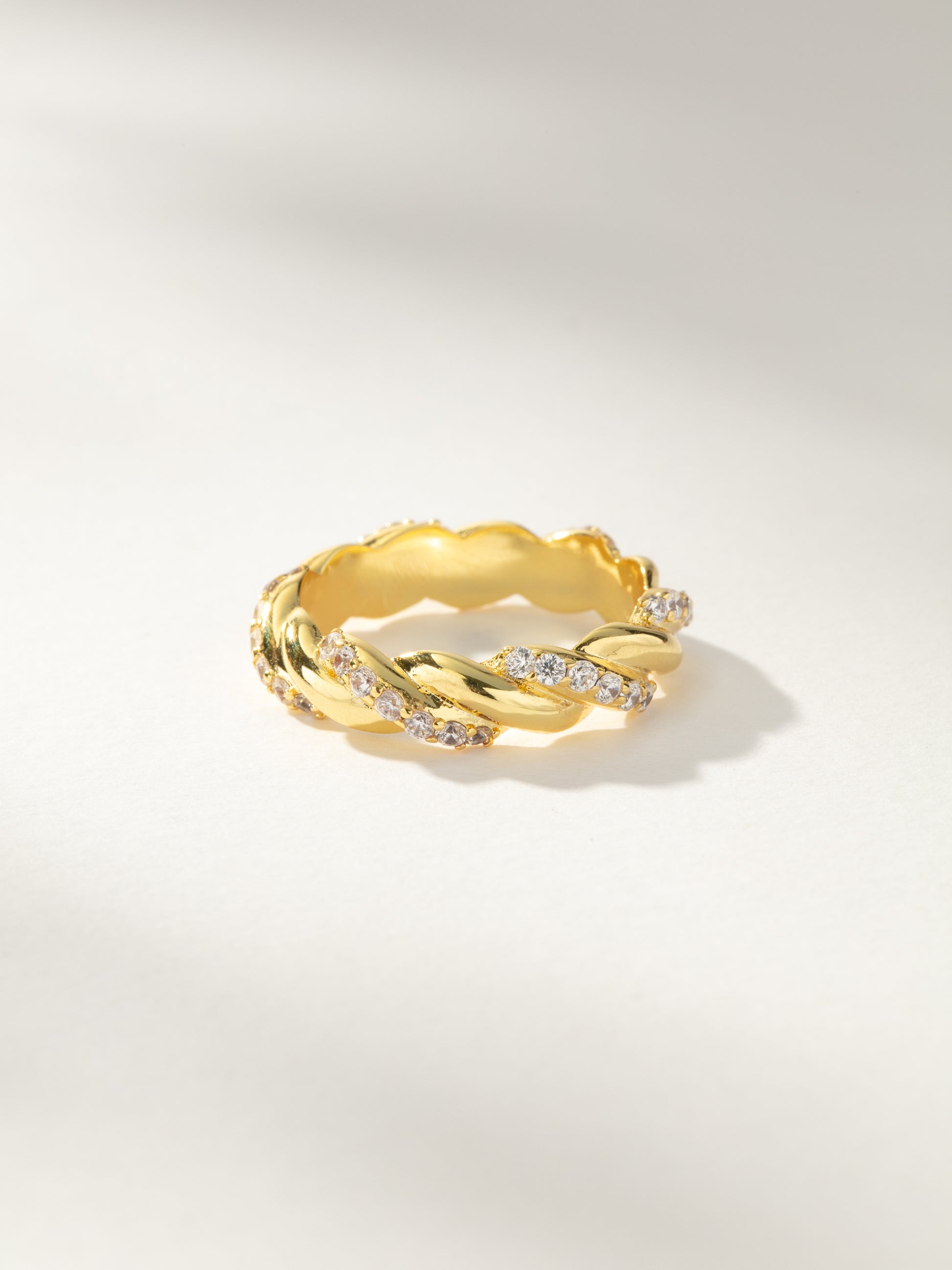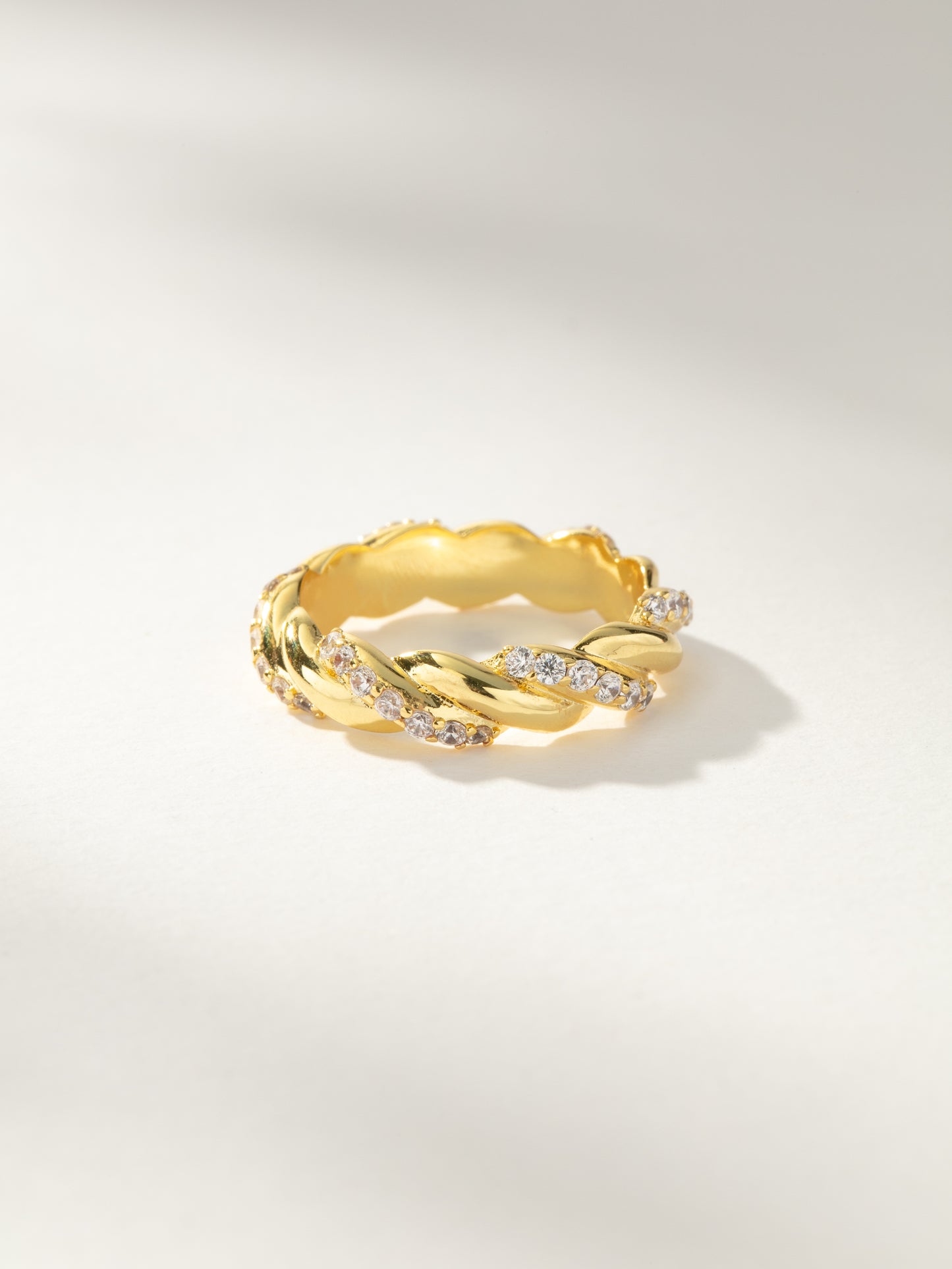 Literal perfection in a ring. This gold twist ring features a simple gold band and a pavé band twisted together for the perfect balance of both minimal and glam. For a full look, layer the Perfection Twist Ring with all of your other Uncommon James rings.