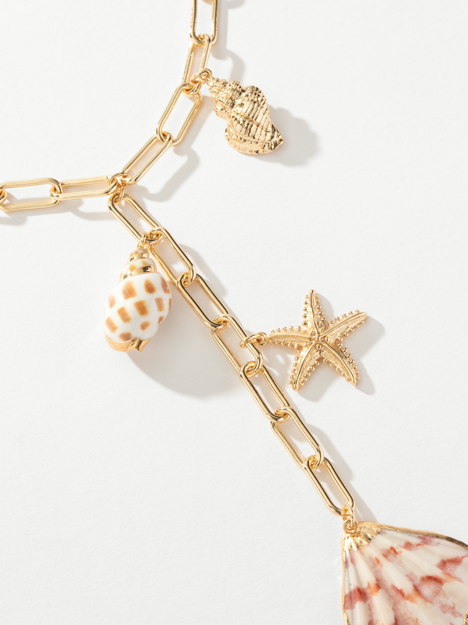 Your beach day look just got even hotter. Our Seashore Shell Charm Necklace is the perfect summer accessory for any activity that involves the sun and sand. This gold statement necklace has a lariat drop with starfish charms and real hand-painted shell charms, making it the perfect pre-styled charm necklace for your summer looks. Want a perfect summer necklace stack? Pair this gold necklace with all of your other Uncommon James necklaces. Note, the natural shells on this lariat necklace may have variations making each necklace one of a kind.
