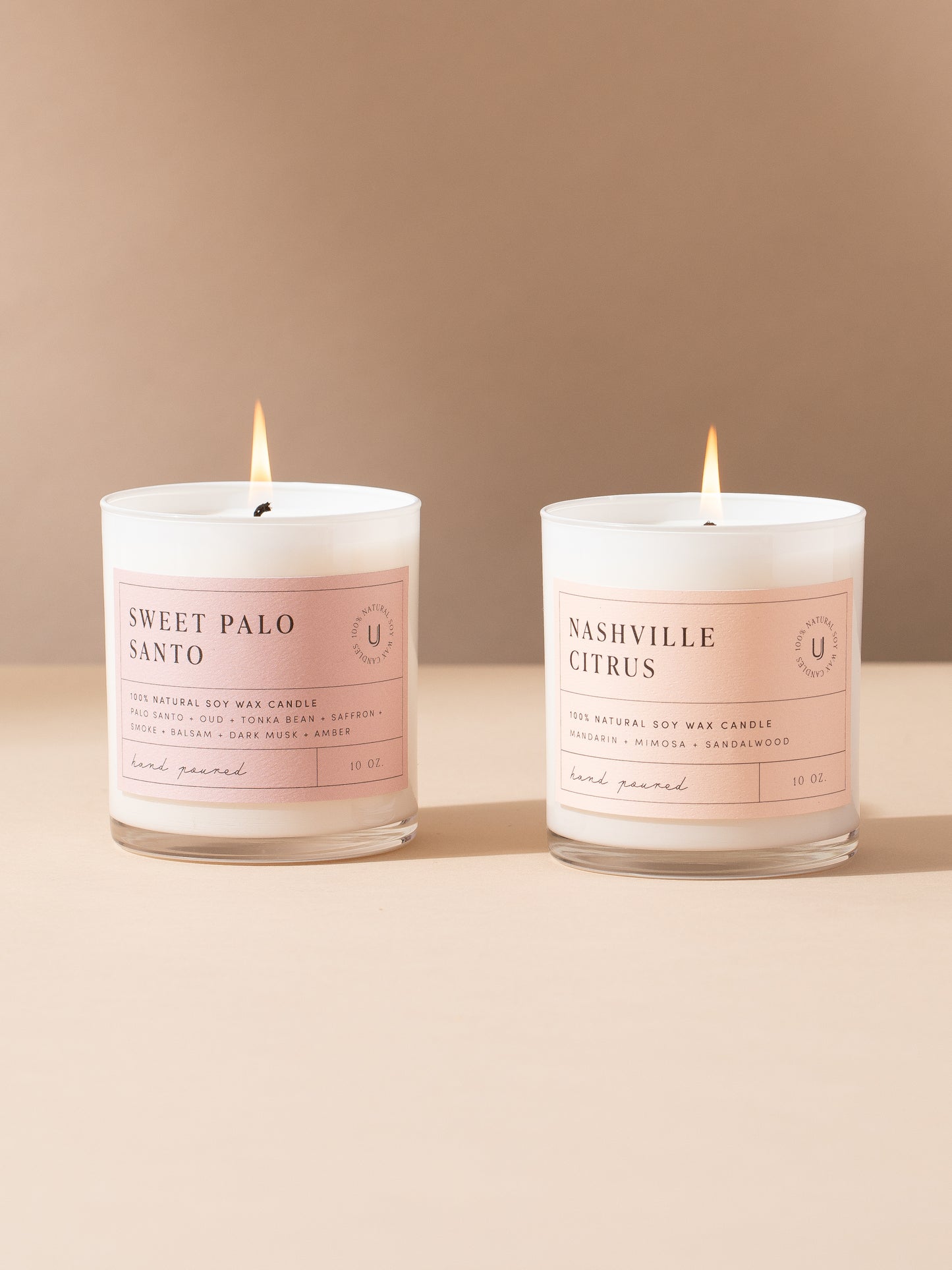 All of our candles are handcrafted in Arizona with 100% non-GMO, USA-grown, all-natural soy wax. Our candles are free of phthalates, parabens, and dyes, and the wicks are 100% cotton, meaning they are lead-free, and nickel-free. Infused with essential oils, our candles bring abundant fragrance and long-lasting burn time.
