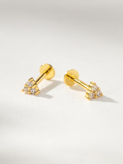 Triangle Diamond Flat Back Earring Gold Vermeil / Pair