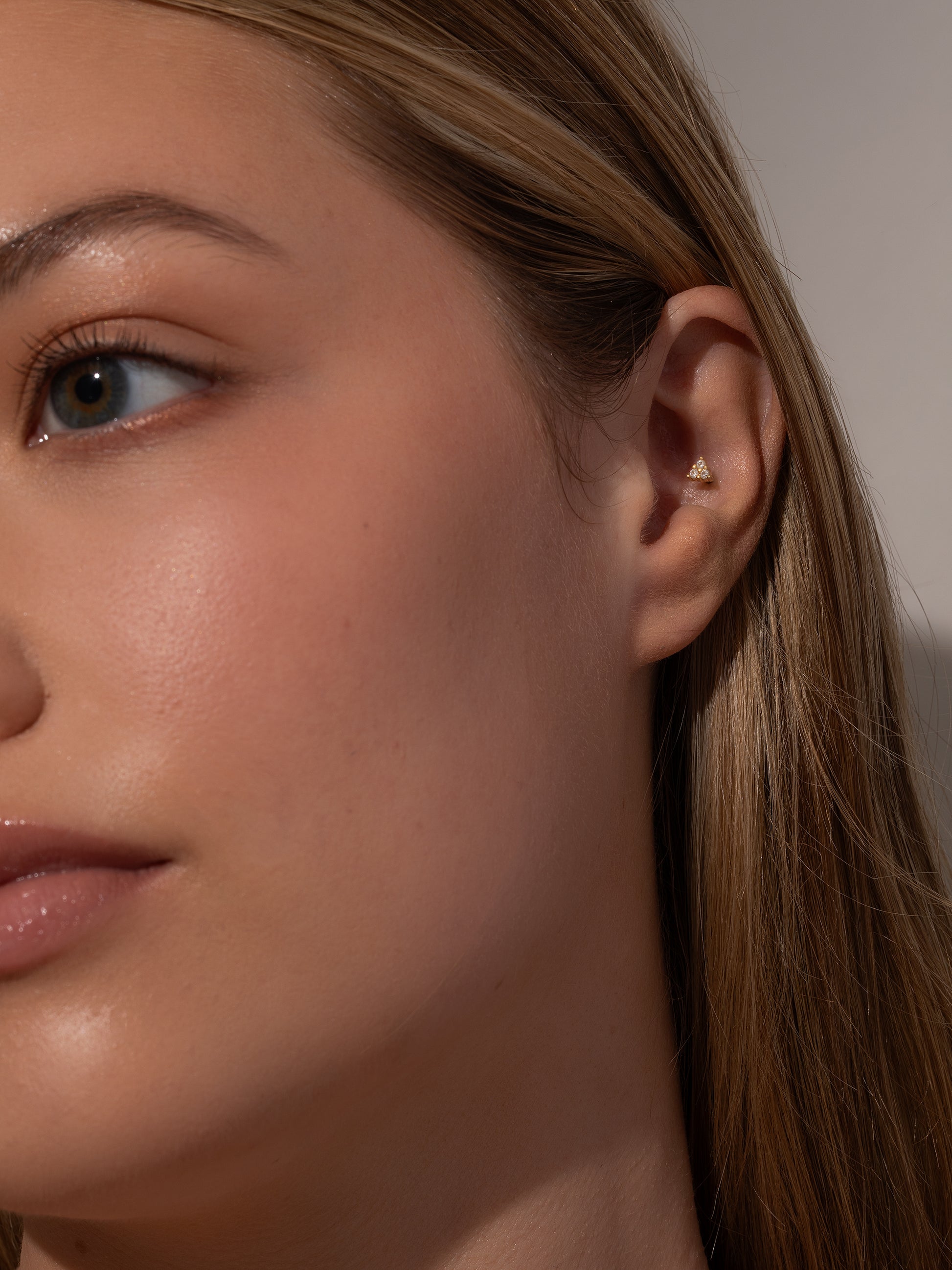 Our Triangle Diamond Flat Back Earrings have you covered from every angle with comfort, customization, and style. Not only do these earrings come in Vermeil and Sterling Silver but you can also buy them as a pair or as a single earring — that way you can get exactly what your stack needs. Looking for hypoallergenic earrings? Make sure you get these in Sterling Silver.