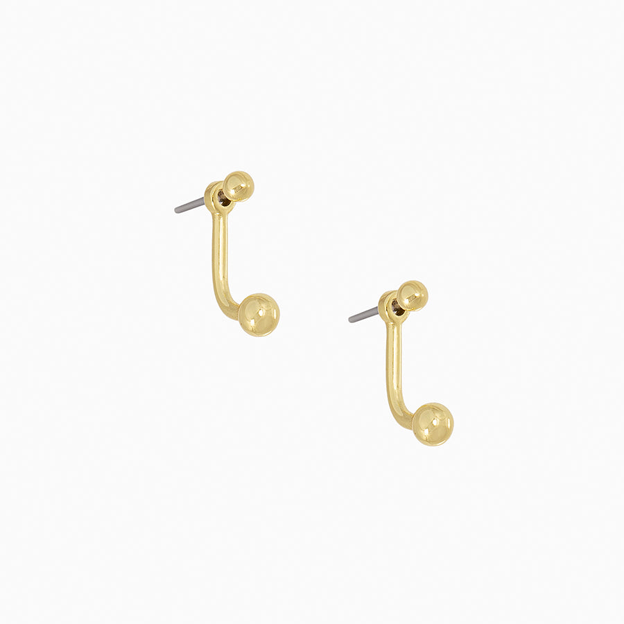 Low key simple, high key cool. One of Kristin’s favorite earrings, our Two Way Street Ear Jacket features two ball studs that hug your lobe. Wear these Sterling Silver (hypoallergenic earrings!) or gold earrings on their own for a minimal look, or make them an everyday staple in your third hole just like KC.