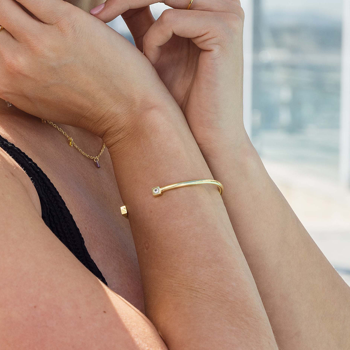 This isn’t your standard gold bracelet, this bangle features square details at each end with a stone in the center. Bound to become part of your daily look, now you see why it’s called the Uniform Bracelet.